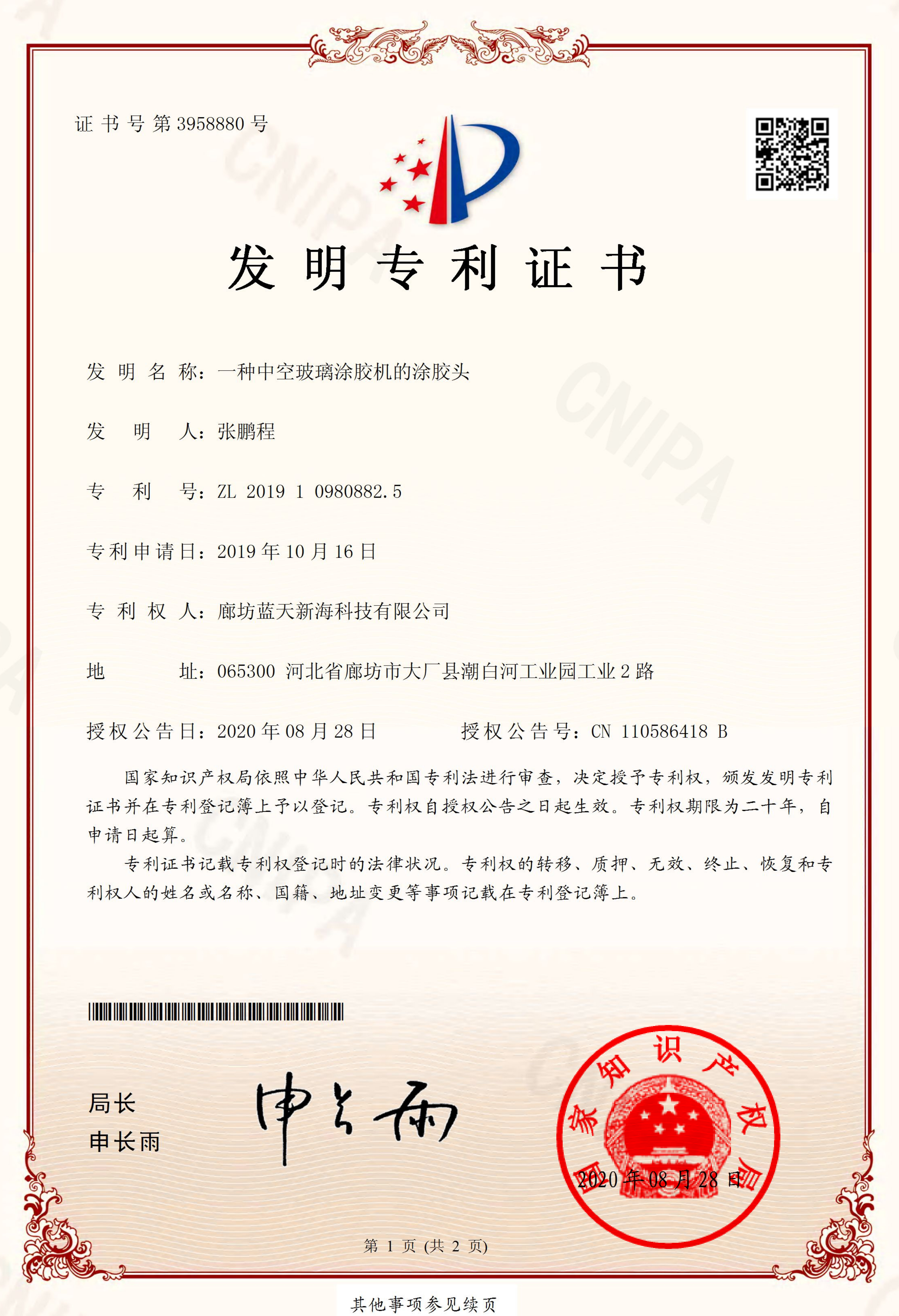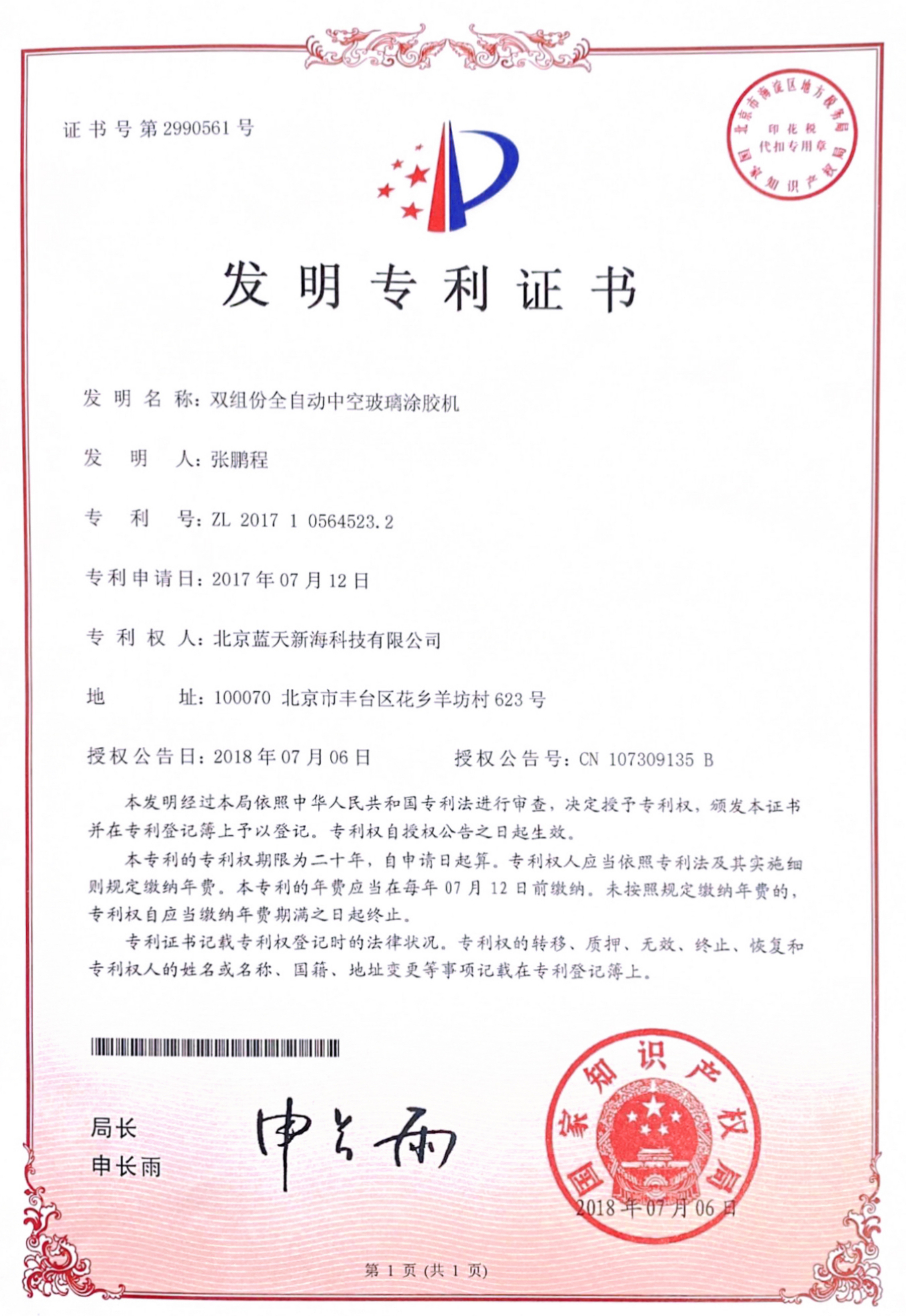 名称:一种中空玻璃涂胶机的涂胶头                                名 称:双组份全自动中空玻璃涂胶机