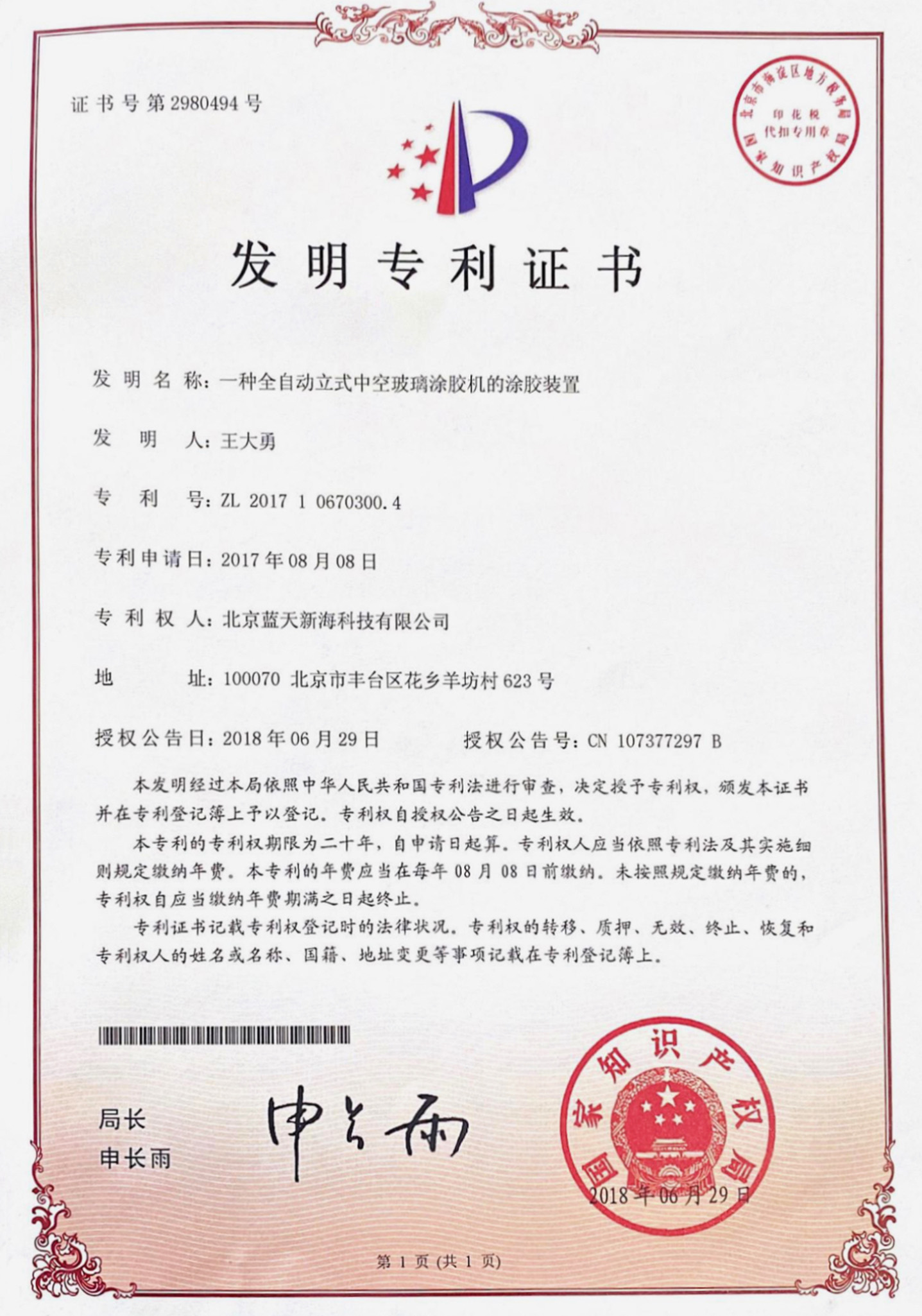 专 利 号:ZL 2017 1 0670300.4                               专利 号:ZL2017 1 0470530.6